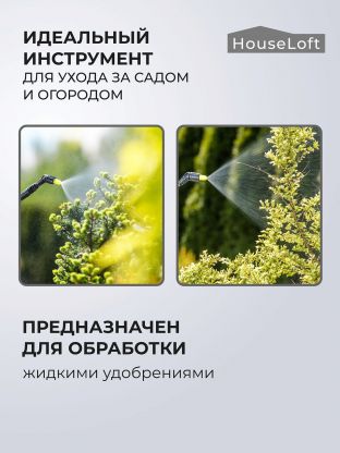Садовый опрыскиватель HouseLoft создан для тех, кто ценит качество и функциональность. Его эргономичный дизайн позволяет с легкостью управляться с устройством, даже если вы не обладаете опытом в садоводстве. Этот опрыскиватель идеально подходит для использования в домашних условиях, помогая поддерживать растения в здоровом состоянии и радовать глаз.