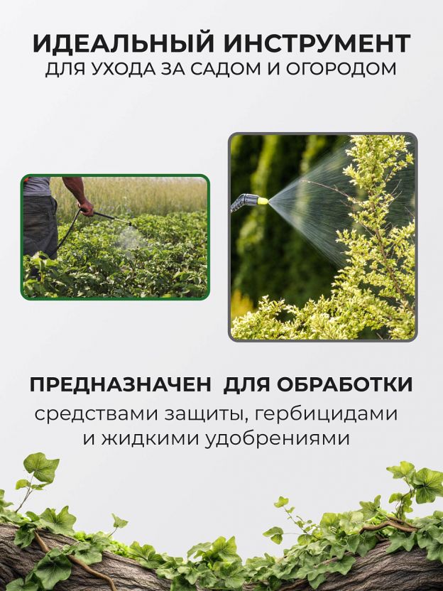 - Используется для опрыскивания,подкормки и полива растений, кустарников, деревьев, картофеля, а также для мытья стен, стекол и других хозяйственных работ.