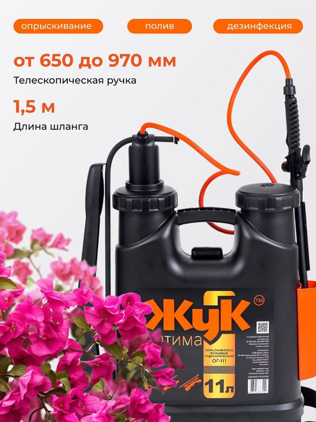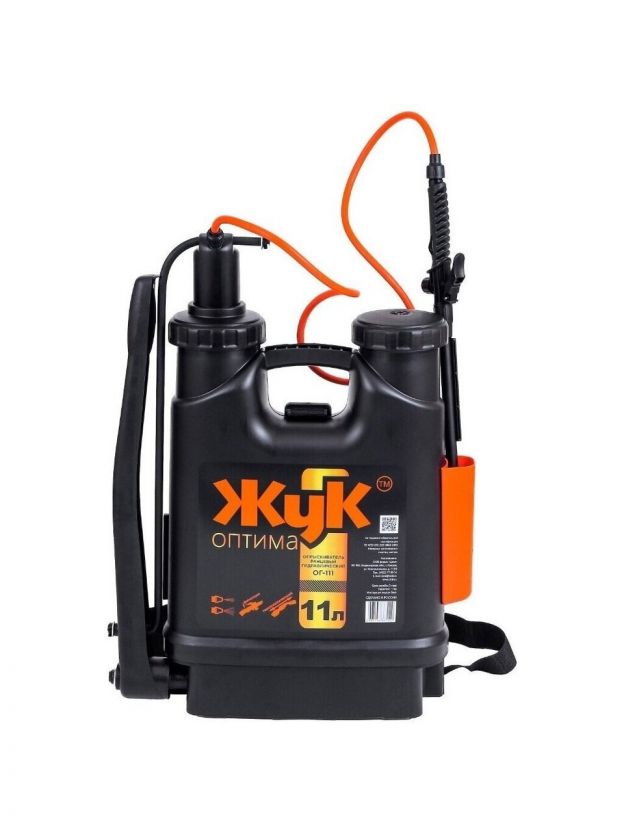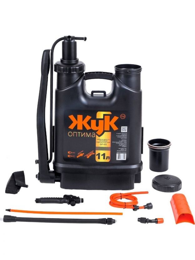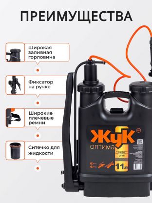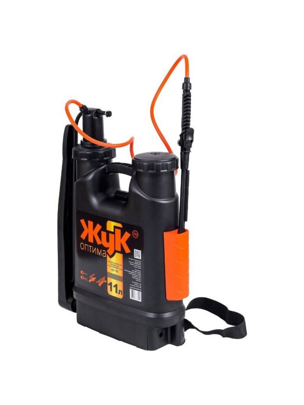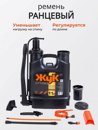 Опрыскиватель садовый Жук, 11 л, пластик, ранцевый, 650-970 мм, телескопический брандспойт, Оптима, ОГ-111 7122-00