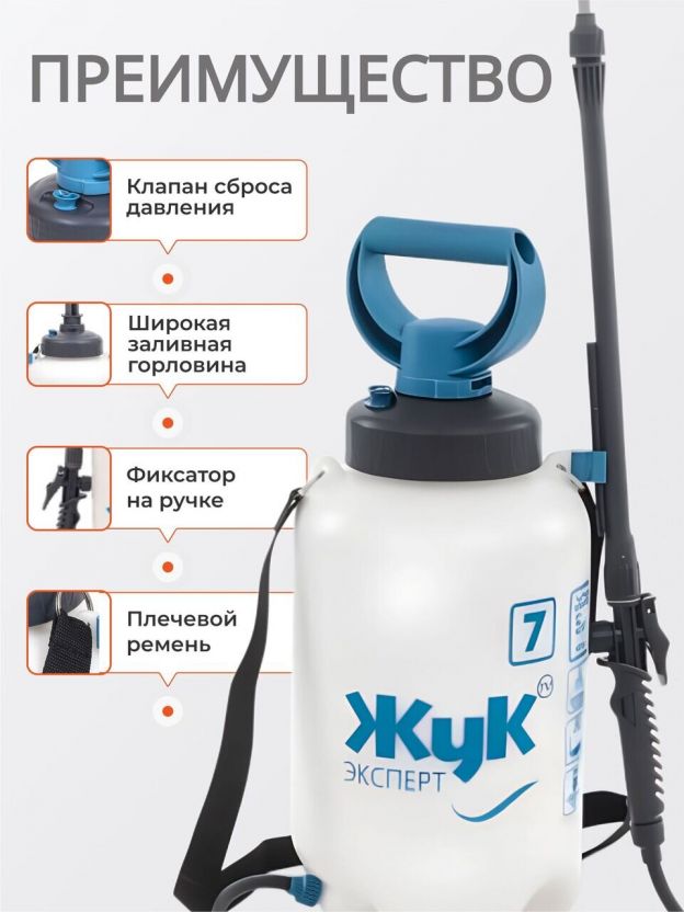 Опрыскиватель садовый Жук, 7 л, пластик, телескопическая штанга, 650-970 мм, Эксперт, ОП-280, 6339-00