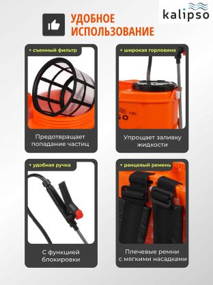Аккумуляторный опрыскиватель не требует физического напряжения для создания давления в баке. Это позволяет снизить нагрузку на руки и спину, что особенно важно при обработке больших участков земли или при длительных работах. При использовании опрыскиватель не рекомендуется переворачивать, при промывании возможно.