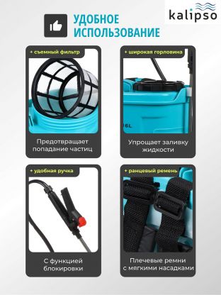 Опрыскиватель садовый аккумуляторный, Kalipso, 16 л, свинцово-кислотный, 8 А.ч, 12 В, пластик, ранцевый, KF-16C-2