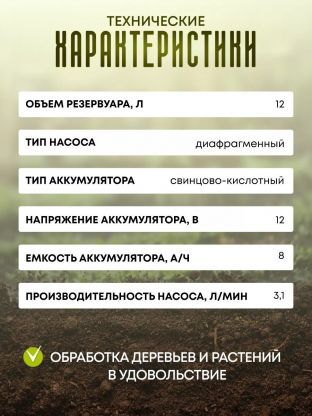 - емкость бака 12 литров: позволяет обрабатывать большие площади без частой заправки;