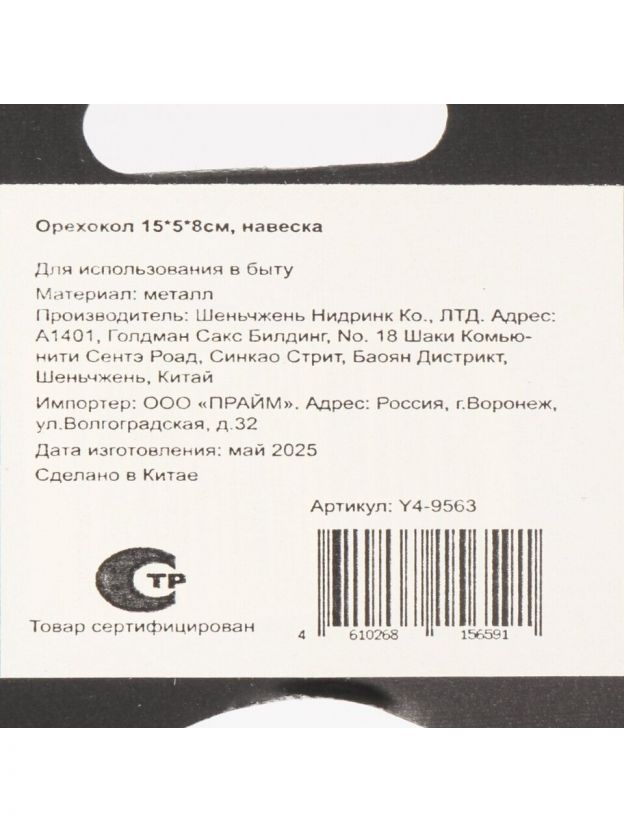 Орехокол металл, 15х5х8 см, навеска, серебристо-черный, Y4-9563