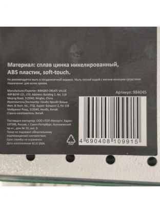 • Материалы: сплав цинка никелированный, ABS пластик.