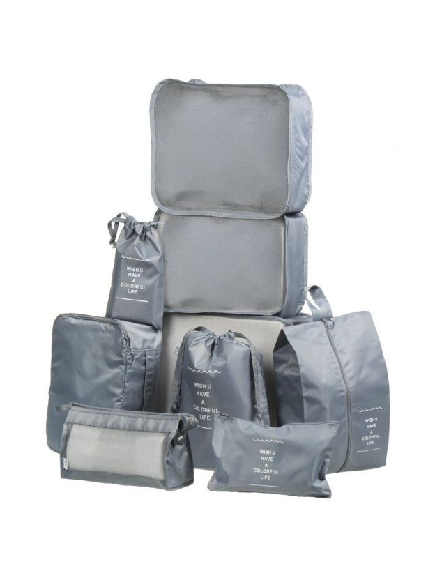 Органайзер для чемодана, полиэстер, дорожный, 9 предметов, серый, Y4-9167