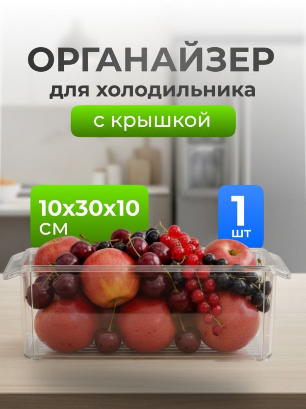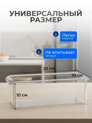 Органайзер для холодильника, 10х30х10 см, с крышкой, прозрачный, Idea, М1585