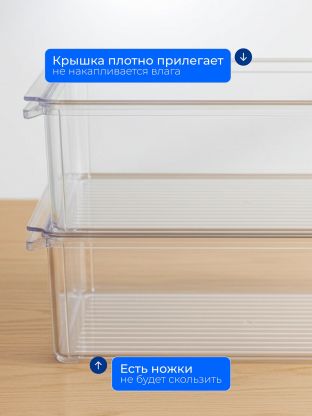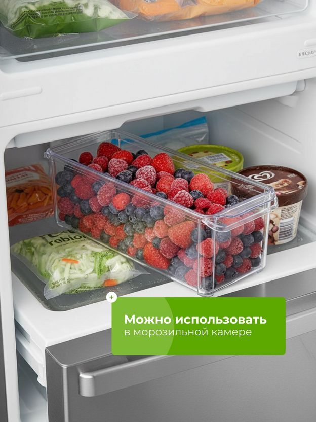 - Благодаря крышке вы можете не волноваться, что внутрь попадёт пыль, грязь или влага. Это делает контейнер идеальным для хранения открытых упаковок с продуктами в холодильнике: запахи не будут смешиваться, а пища дольше останется свежей.
