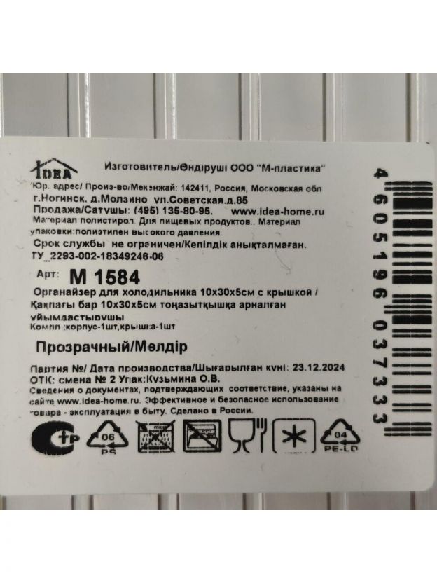 Органайзер Idea М1584 прямоугольной формы с крышкой предназначен для организации порядка в холодильнике. Размер подобран для наилучшего размещения на полках. В передней части органайзер имеет удобную ручку с хватким выступом.
