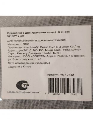Органайзер для хранения, 6 секций, 32х32х12 см, прозрачный, Y6-10742
