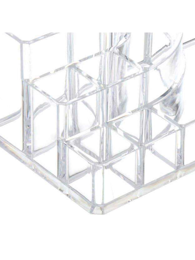 Погрузитесь в мир порядка и организованности с органайзером для косметики. Этот стильный и функциональный аксессуар станет незаменимым помощником в поддержании чистоты и порядка на вашем туалетном столике. Прозрачный дизайн органайзера позволяет легко находить нужные предметы, а компактные размеры делают его идеальным решением для любого пространства.
