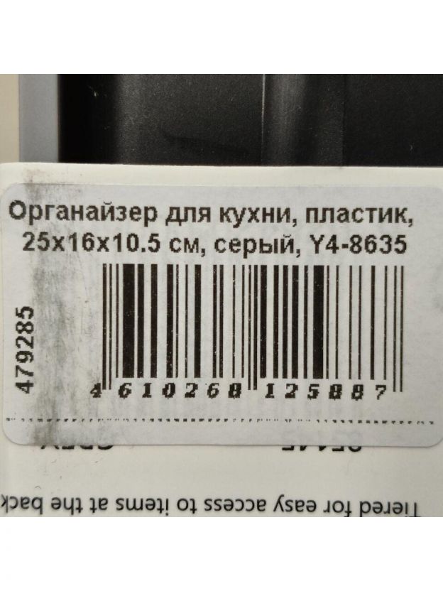 Органайзер для кухни, пластик, 25х16х10.5 см, серый, Y4-8635