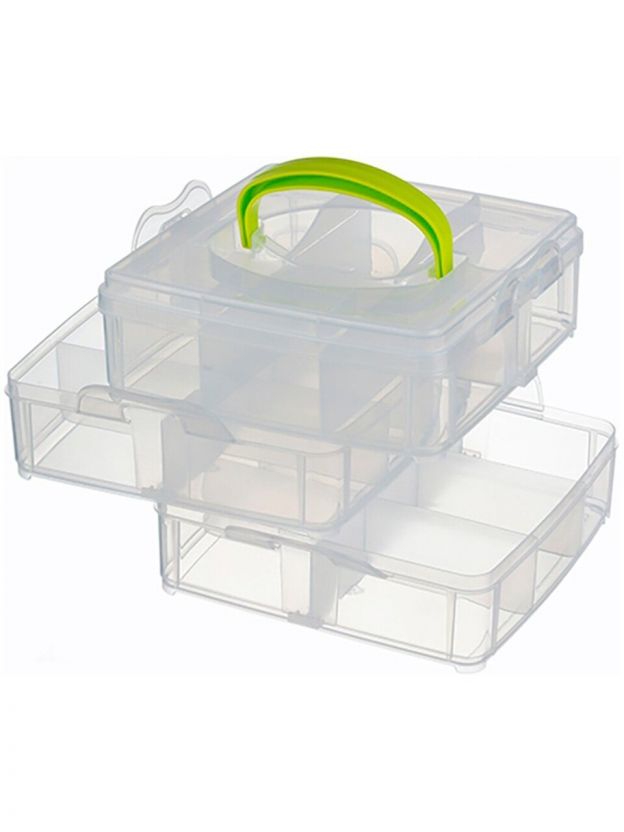 Прозрачный корпус позволяет разглядеть, что лежит в ящичках, даже не открывая их. Удобен в переноске и хранении, не занимает много места.