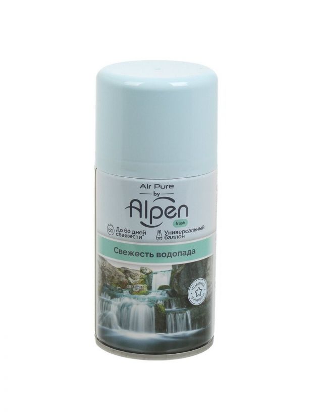 Погрузитесь в атмосферу свежести и чистоты с освежителем воздуха Alpen, 250 мл, Свежесть водопада. Этот сменный освежитель идеально подходит для создания уютной и приятной обстановки в любом помещении.