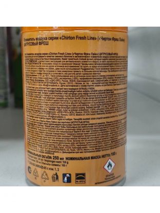Освежитель воздуха Chirton, 250 мл, Fresh Line Цитрусовый фреш, сменный, сухое распыление