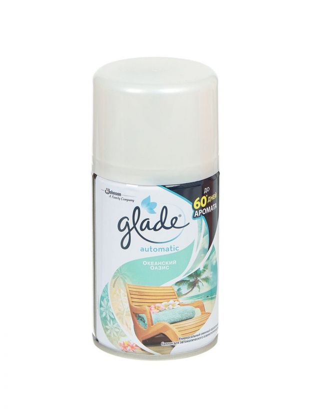 Универсальный сменный аэрозольный баллон для автоматических освежителей воздуха GLADE Automatic.