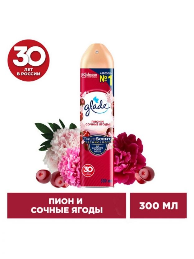 Освежитель воздуха Glade, 300 мл, Пион и сочные ягоды, 865212