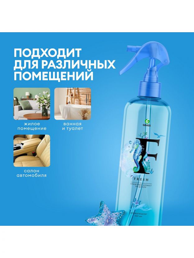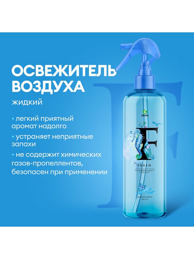 Освежитель воздуха Grass 400 мл «Морская свежесть» — быстро устраняет неприятные запахи, создает ощущение чистоты и свежести на долгое время. Идеальное решение для дома, офиса и дачи.