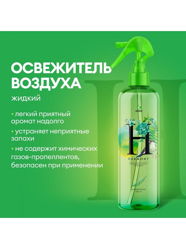 Освежитель воздуха Grass Harmony Луговые цветы 400 мл — быстрое устранение неприятных запахов и лёгкий аромат свежести для вашего дома или офиса. Почему выбирают: Сбалансированный аромат луговых цветов — уникальное сочетание свежести и лёгкости без навязчивых нот. Экономичный объём 400 мл — хватает надолго, срок хранения 3 года, удобный формат спрея. Универсальное применение — подходит для ванной, туалета, общественных помещений, дачи и дома. Освежитель воздуха Grass Harmony Луговые цветы — это эффективное средство для быстрого устранения неприятных запахов и создания атмосферы уюта. Благодаря удобной форме спрея вы легко обработаете воздух в любой комнате, включая ванную, туалет или офис. Состав не только освежает, но и способствует лёгкому увлажнению воздуха, что особенно актуально в отопительный сезон или при сухом климате. Покупатели часто спрашивают: «Как выбрать освежитель воздуха для дома?» или «Подходит ли этот спрей для общественных помещений?». Grass Harmony оптимален для разных сценариев: он не оставляет мокрых следов, не содержит агрессивных компонентов, а объёма хватает для длительного использования. В отличие от аналогов, данный освежитель не требует автоматических устройств или сменных блоков — всё просто и удобно. Если вы ищете, какой освежитель воздуха лучше для дачи или квартиры, обратите внимание на этот спрей: он универсален и прост в применении. Закажите Grass Harmony Луговые цветы — и получите свежесть без лишних затрат. Частые вопросы: Как использовать освежитель воздуха Grass Harmony? Достаточно распылить спрей в помещении на расстоянии 20–30 см от поверхности. Не оставляет мокрых пятен, не требует автоматических устройств. Подходит ли этот освежитель для ванной комнаты? Да, Grass Harmony специально разработан для устранения запахов в ванной и туалете, а также для общественных помещений и дачи. Какой объём и срок хранения у Grass Harmony Луговые цветы? Объём — 400 мл, срок хранения — 3 года. Этого хватает для длительного использования в любом помещении. Способ применения: Нажмите на защитный блокиратор, направив в противоположную сторону от лица, распространите аромат нажатием на курок. Состав: _30% очищенная вода;