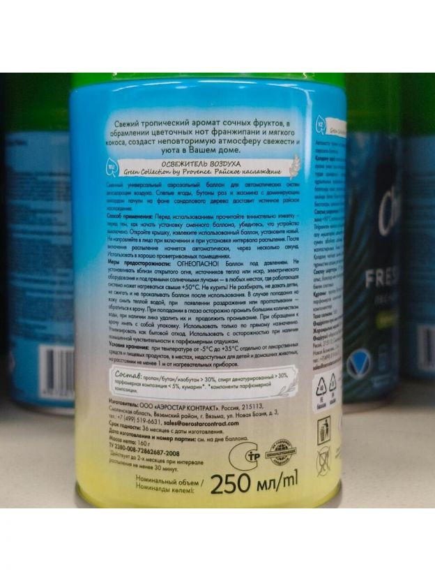 Освежитель воздуха Provence, 250 мл, Райское наслаждение, сменный, для автоматического освежителя, сухое распыление, APR31