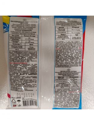 Способ применения: отбеливатель растворить в воде. Положить выстиранное бельё. 30 г отбеливателя рассчитано на 2 кг сухого белья. Отбеливание можно совмещать со стиркой в стиральной машине.