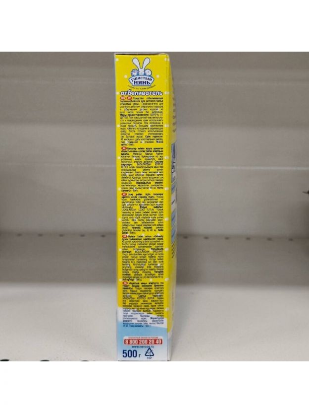 Отбеливает без кипячения при низких температурах, а это позволяет сохранить первоначальный вид одежды даже после многократных стирок. Может использоваться для различных видов тканей как при стирке вручную, так и в стиральной машине. Характеристики: Вес: 500 г; Бренд: Ушастый нянь; Тип: отбеливатель; Преимущества: Позволяет экономить до 50% стирального порошка; Не содержит хлор;