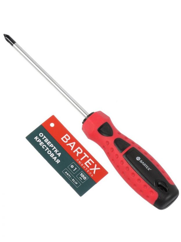 Отвертка крестовая, Bartex, PH1, 1х100 мм, антискользящая двухкомпонентная, CrV сталь, Любитель