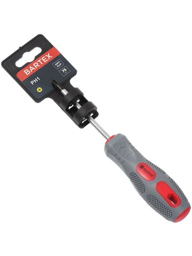 Отвертка крестовая, Bartex, PH1, 1х75 мм, антискользящая двухкомпонентная, CrV сталь, K0029N
