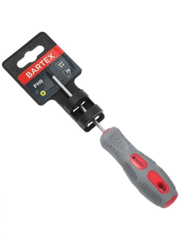 Отвертка крестовая, Bartex, Ph0, 0х75 мм, антискользящая двухкомпонентная, CrV сталь, K0029N