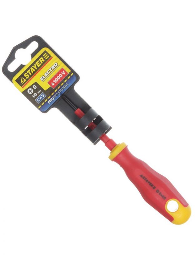 Отвертка крестовая диэлектрическая, Stayer, 0х60 мм, двухкомпонентный, 25142-0-06