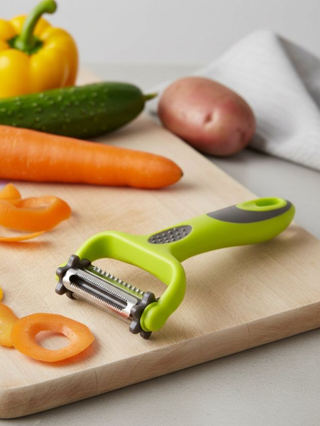 Удобна для чистки картофеля, моркови, огурцов, яблок и других овощей и фруктов — как дома, так и на даче.