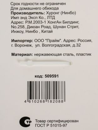 Лезвие — нержавеющая сталь, рукоятка — прочный пластик. Это гарантирует долговечность и лёгкий уход.