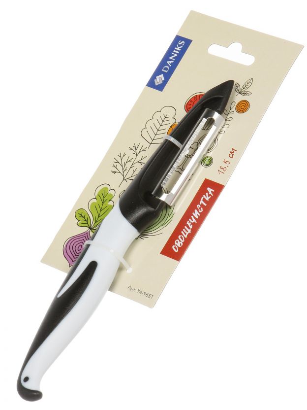 Овощечистка Daniks с лезвием из нержавеющей стали — выбор тех, кто ищет долговечный и гигиеничный инструмент для быстрой чистки картофеля, моркови, яблок и других овощей и фруктов. Благодаря оптимальному размеру (18.5 см) и прочной пластиковой рукоятке, овощечистка удобно лежит в руке и не выскальзывает даже при длительном использовании.