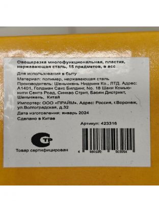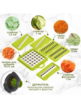 Овощерезка многофункциональная, пластик, нержавеющая сталь, 15 предметов, в ассортименте, Y4-6211
