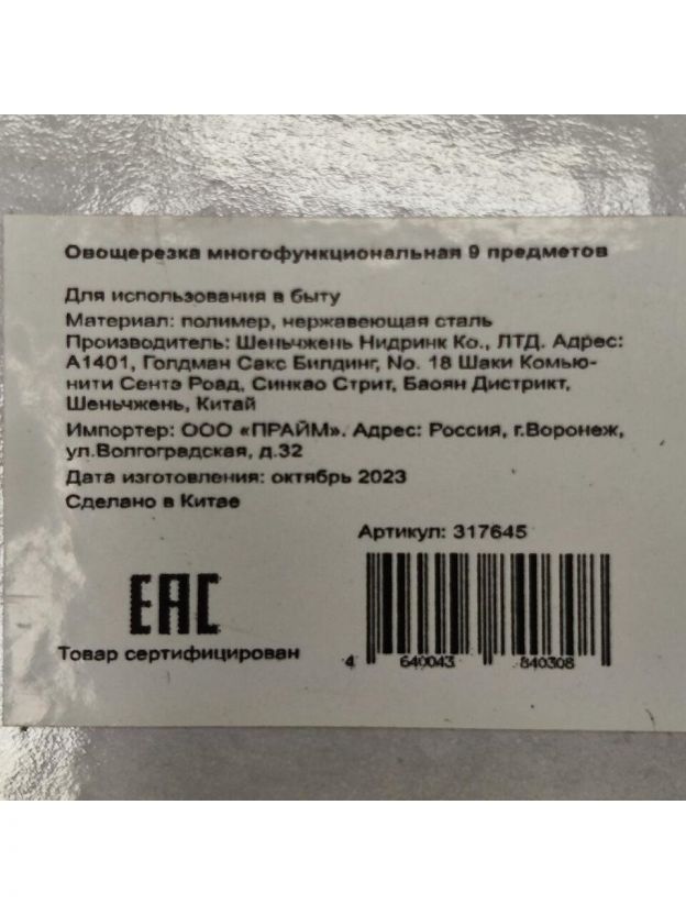 Овощерезка многофункциональная, пластик, нержавеющая сталь, 9 предметов, в ассортименте, Y507