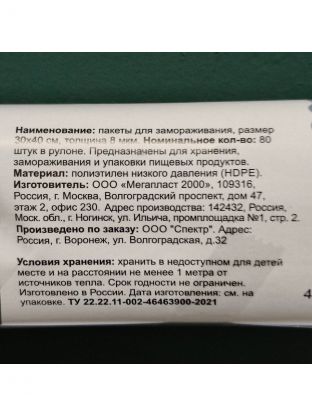 Пакеты подходят для заморозки и хранения различных продуктов: овощей, фруктов, мяса, рыбы, полуфабрикатов и готовых блюд. Они помогают сэкономить место в морозильной камере и организовать хранение продуктов.