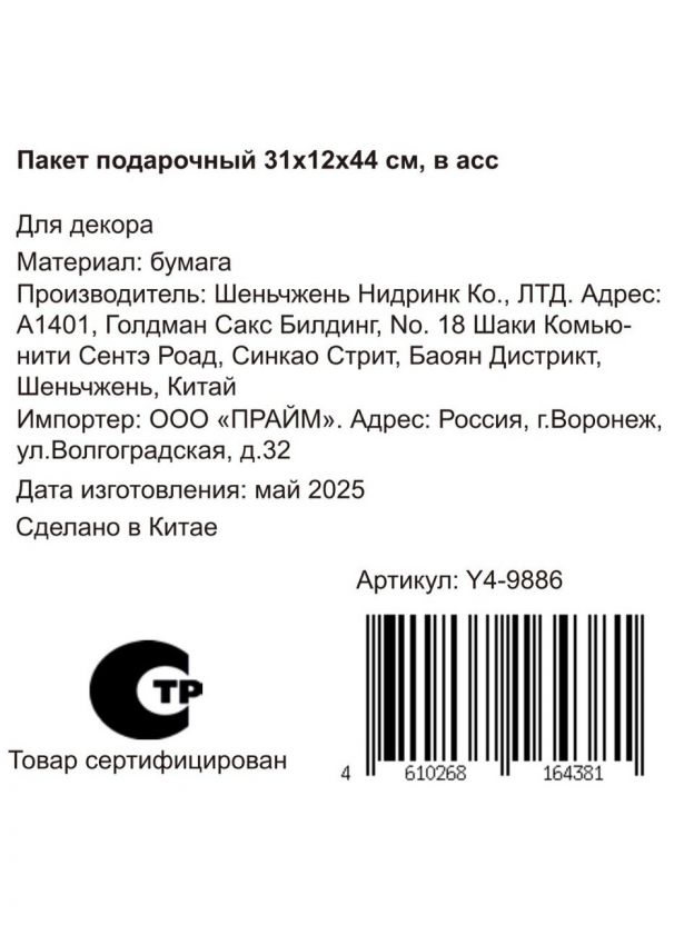 Упаковка подарочная