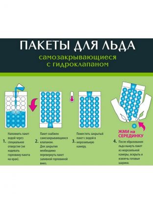 Набор одноразовых пакетов для льда - отличное решение если Вы любите освежающие напитки. Упаковку с пакетами удобно хранить, она занимает минимум места. Замороженный лед получается в форме шариков. Кстати, если Вы любите чтобы лед был прозрачный - используйте кипяченую воду и все получится!