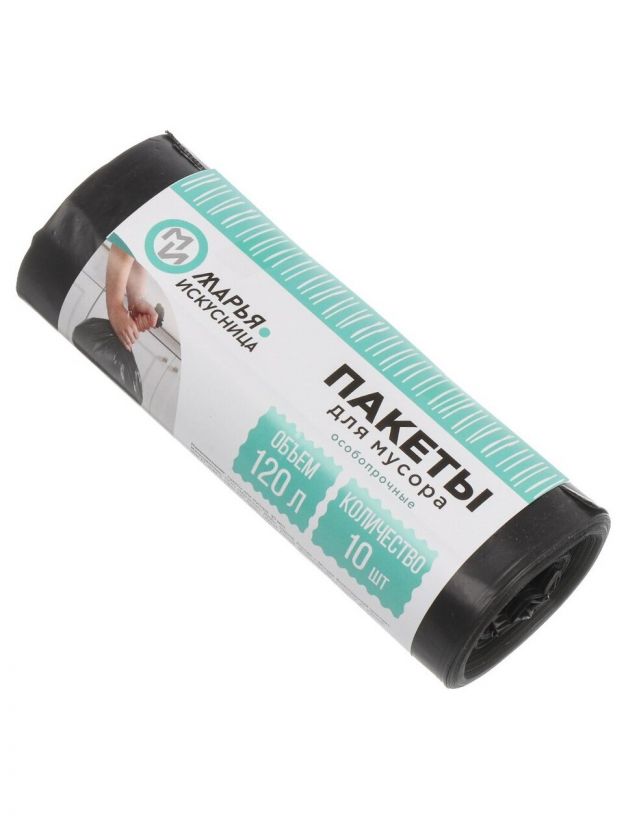 Пакеты для мусора 120 л, 10 шт, 30 мкм, особопрочные, Марья Искусница, 9817, черные