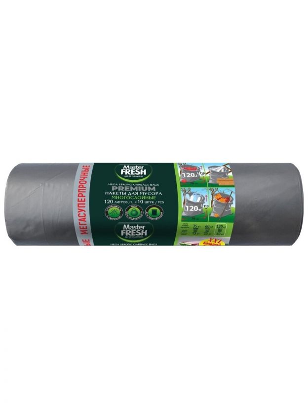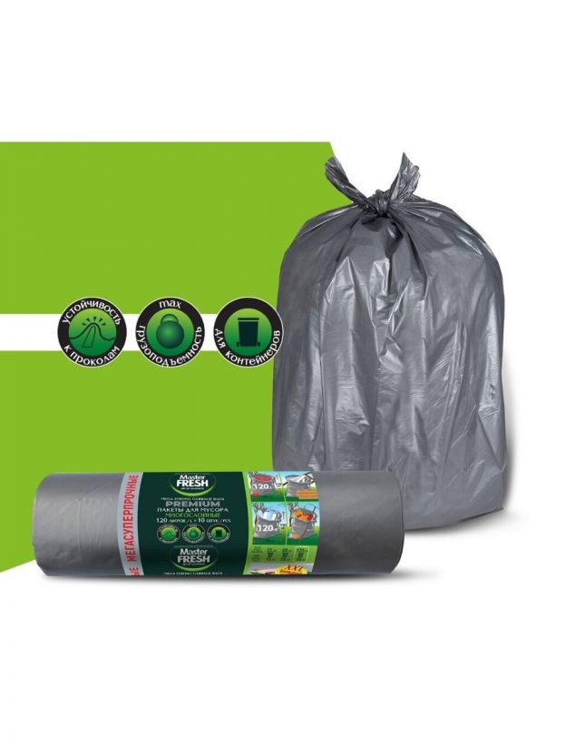Многослойные, мегасуперпрочные мешки для мусора Master Fresh Premium изготовлены по инновационной технологии - коэкструзия, в отличии от обычных пакетов они в разы прочнее. Высококачественная многослойная пленка дает максимальную прочность и грузоподъемность, эластичность и стойкость к проколам. Имеются удобные ручки-завязки. Мешки обладают наилучшими механическими свойствами и повышенной разрывостойкостью. Пакеты не имеют неприятного запаха, разводов, вкраплений, посторонних фракций, что доказывает высокое качество сырья при их изготовлении, которое напрямую влияет на длительность эксплуатации пакета. Мешки для сбора и вывоза мусора. Широко применяются в быту и на производстве.