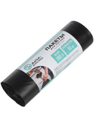Пакеты для мусора 180 л, 10 шт, особопрочные, Марья Искусница, 9831, черные