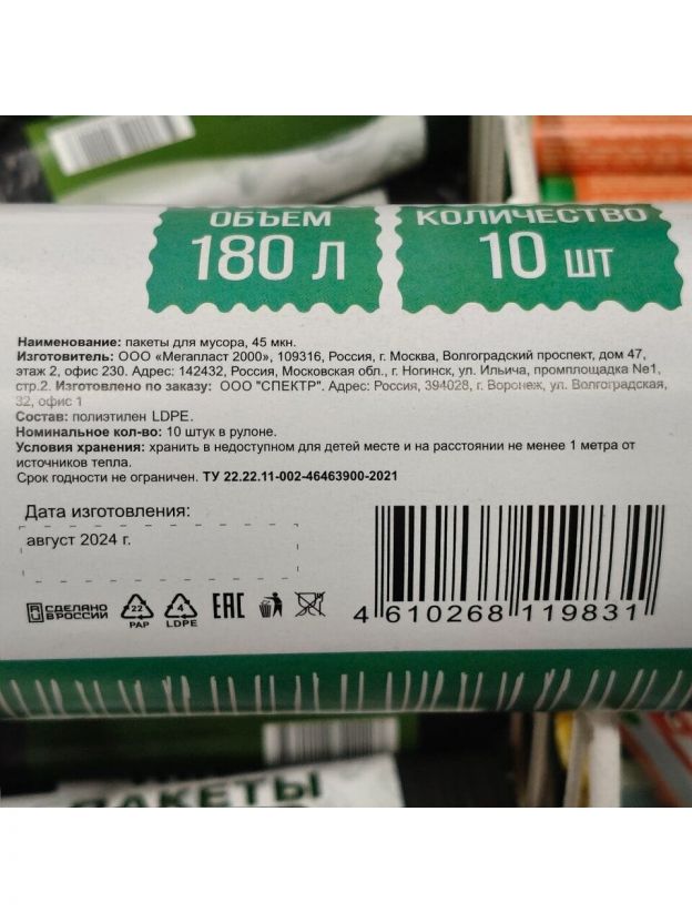 Пакеты предназначены для пищевых, химических и строительных отходов. Отличаются особой прочностью, что так необходимо при работе со строительным и другим габаритным мусором. Разделены качественной перфорацией, не повреждающей пакет в момент отрыва от рулона.