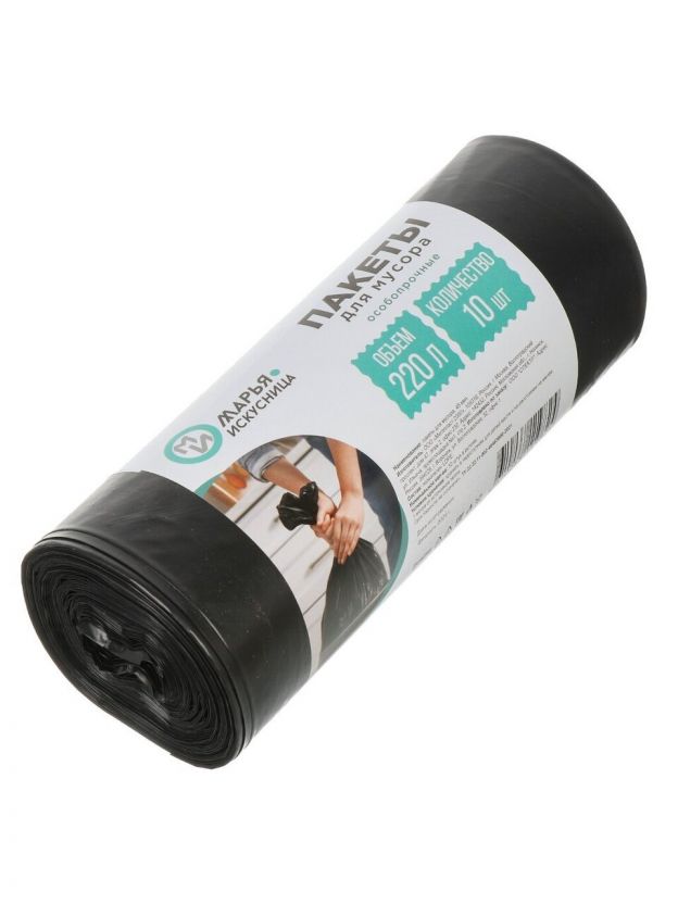 Пакеты для мусора 220 л, 10 шт, Марья Искусница, 9824, черные