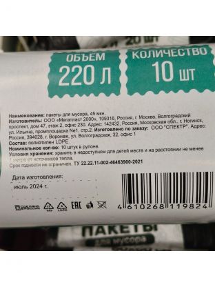 Пакеты предназначены для пищевых, химических и строительных отходов. Отличаются особой прочностью, что так необходимо при работе со строительным и другим габаритным мусором. Разделены качественной перфорацией, не повреждающей пакет в момент отрыва от рулона.