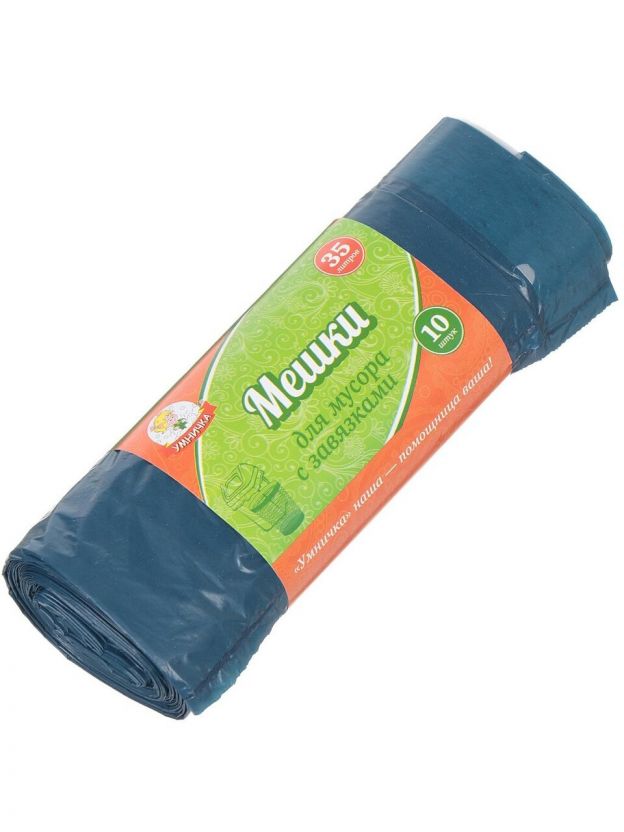 Мешки для мусора “Умничка®” с завязками 35 л х 10 шт. Мешки для мусора прекрасно удерживают неприятные запахи и препятствуют распространению микробов, благодаря тесьме-завязке. Оптимальная толщина мешка и специальный состав сырья позволяют избежать разрывов при проколах и порезах мешков для мусора. Дно мешка легко выдерживает нагрузку благодаря особому крою бокового шва. Разделены качественной перфорацией, не повреждающей мешок в момент отрыва от рулона.
