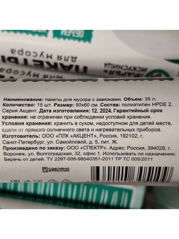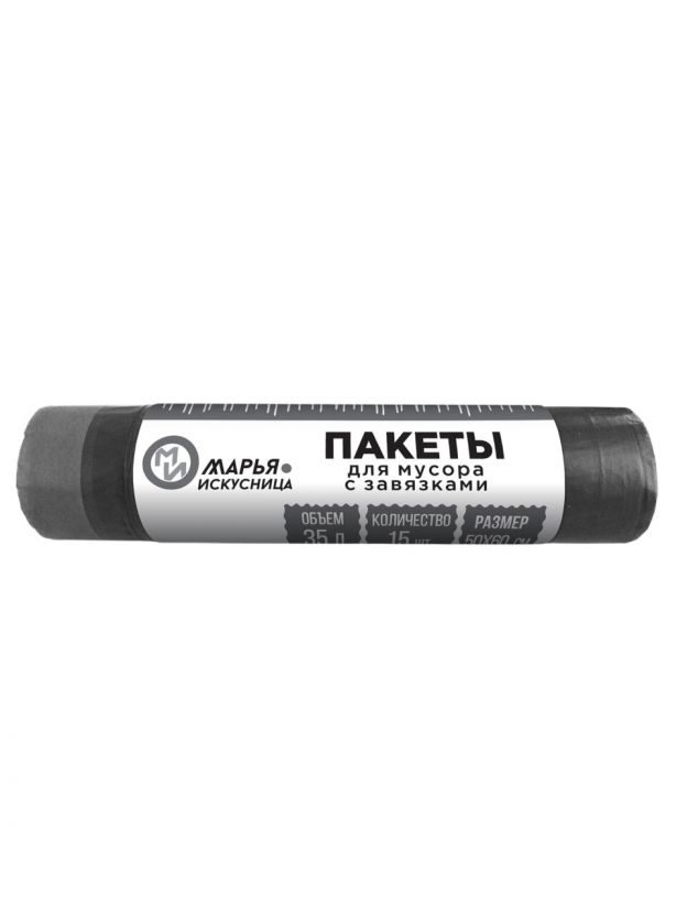 Пакеты для мусора 35 л, 15 шт, 18 мкм, особопрочные, с завязками, Марья Искусница