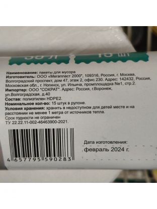 Пакеты Марья Искусница предназначены для утилизации мусорных отходов в быту, в офисах или на предприятиях. Изделие не подходит для жидких отходов, острых предметов и химически агрессивных веществ.