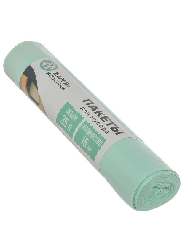 Пакеты для мусора 35 л, 15 шт, 18 мкм, прочные, с завязками, Марья Искусница, 90283, тиффани