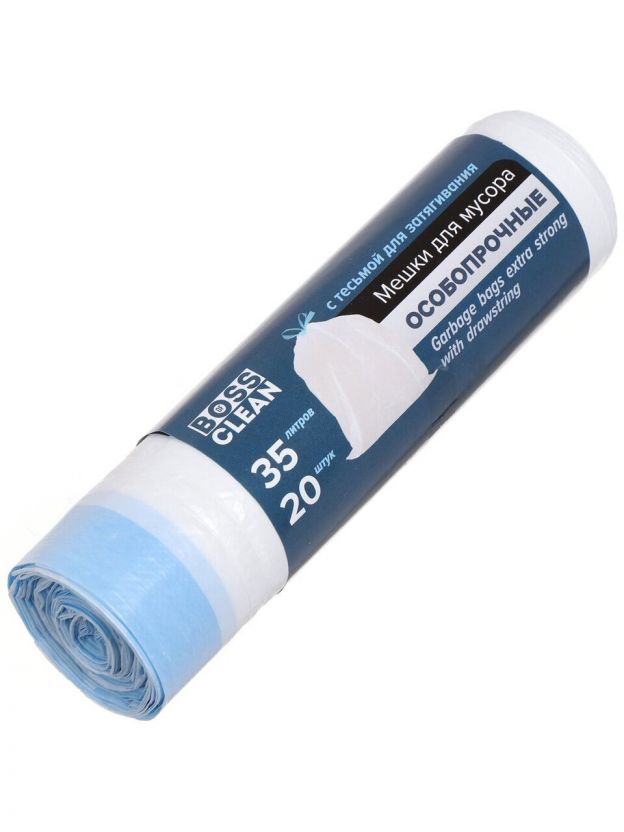 Пакеты для мусора 35 л, 20 шт, 18 мкм, особопрочные, с завязками, Bossclean
