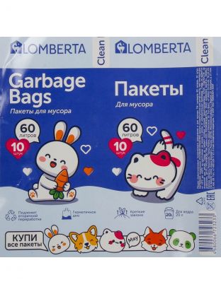 Пакеты для мусора 60 л с завязками Lomberta: удобно убирать без протечек и запаха, оптимально для дома и дачи — 10 шт. по выгодной цене.